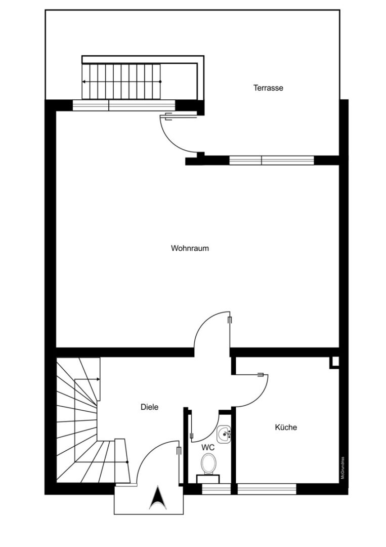 Dieses ansprechende, gepflegte Reihenmittelhaus bietet ein optimales Platzangebot für ein Paar oder eine Familie mit einem Kind. Im Erdgeschoss befinden sich die Diele mit Treppenhaus, das Gäste-WC, die Küche und das Wohn-Esszimmer mit schönem Gartenblick. Die Diele und das Treppenhaus sind mit einem hellen Marmorbelag und das Wohn-Esszimmer mit Parkett ausgelegt.