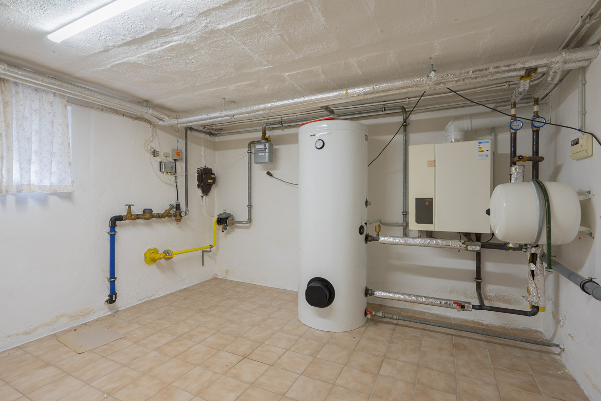 Das vollunterkellerte Haus bietet eine Waschküche, ein kleines Bad, einen Vorratsraum sowie eine Werkstatt mit direktem Zugang zum Garten. Der ausgebaute Dachboden verfügt über zwei Hobbyräume sowie einen praktischen Kriechboden.