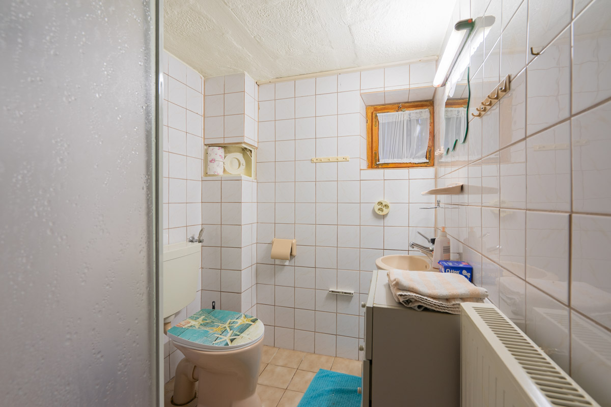 Im Untergeschoss befinden sich neben einem kleinen Bad und einer Waschküche ein großzügiger Vorratsraum sowie eine Werkstatt mit direktem Zugang zum Garten – ideal für Handwerker oder als Hobbybereich. Diese Flächen bieten vielseitige Nutzungsmöglichkeiten.